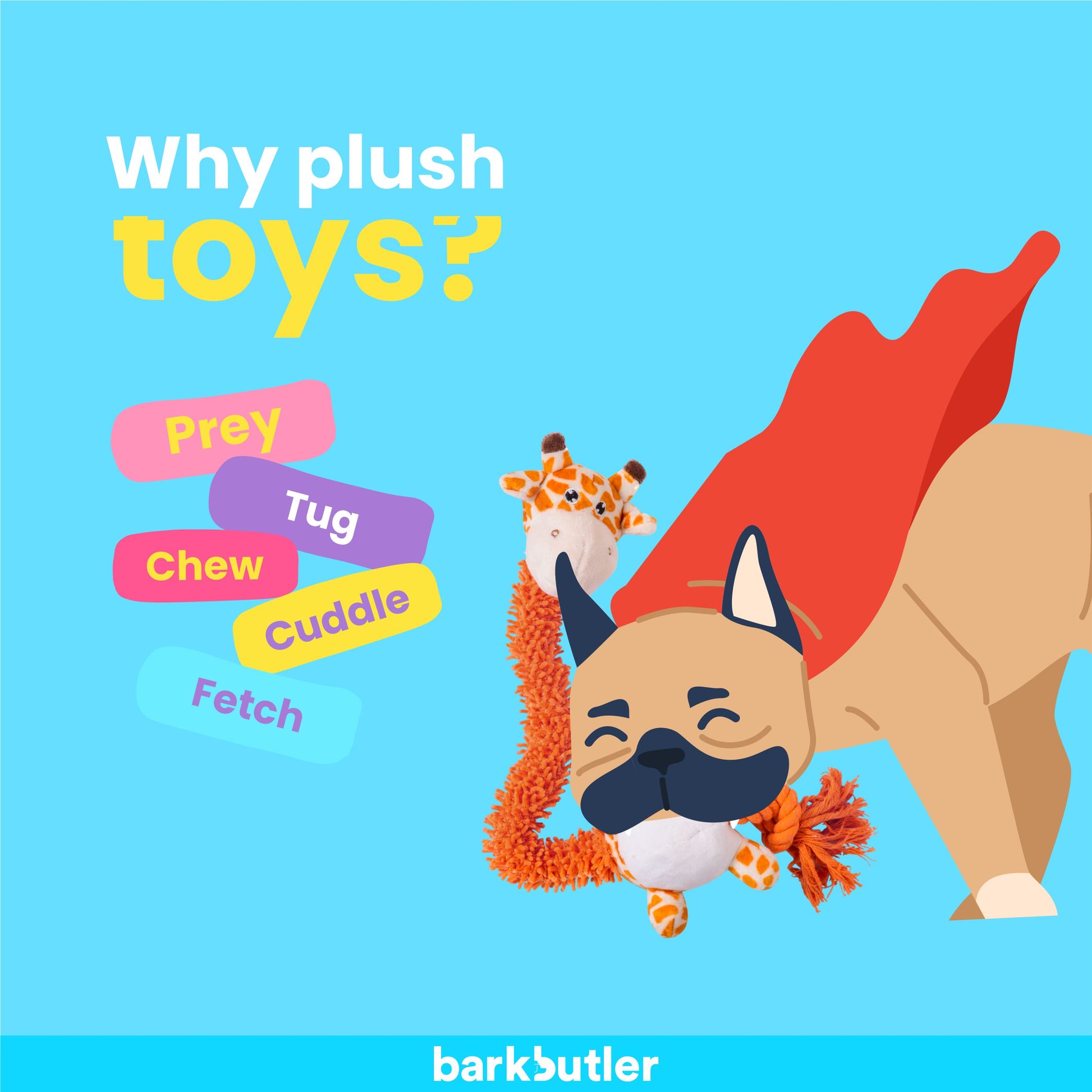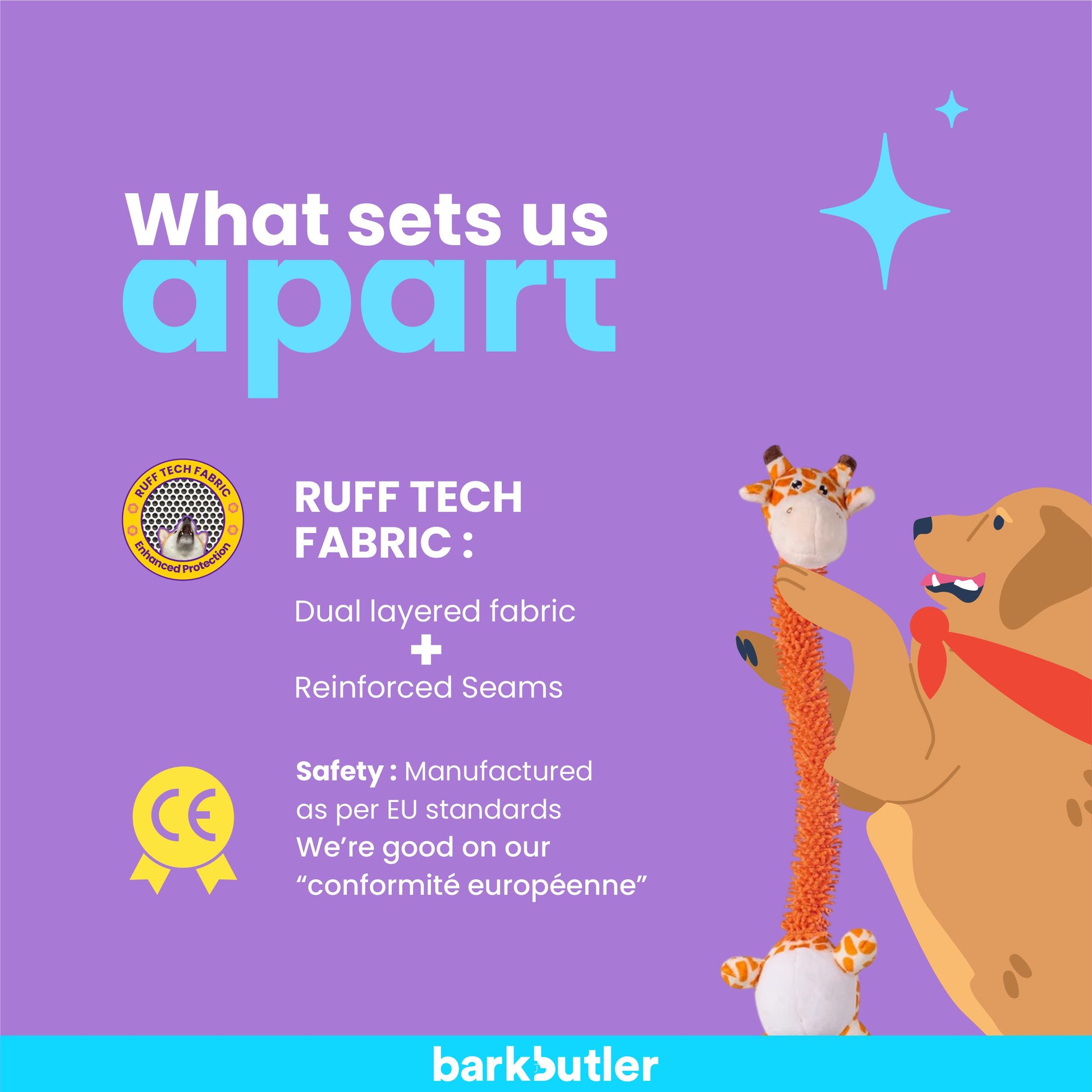 Garry The Giraffe by BarkButler is a versatile interactive toy designed for small to medium dogs. Made with durable layered fabric and reinforced stitching, it withstands moderate chewing while remaining gentle on gums. Featuring a built-in squeaker that mimics prey sounds and sturdy ropes for tugging, this toy encourages active play and mental stimulation. Ideal for breeds like Shih Tzus, Garry The Giraffe offers lasting entertainment and supports healthy chewing habits.
