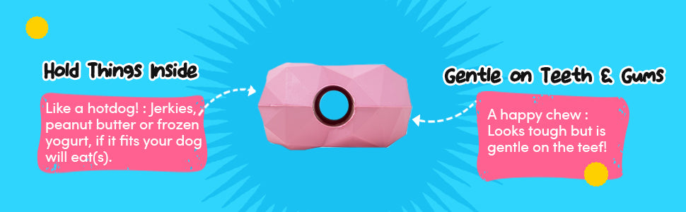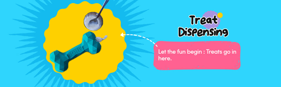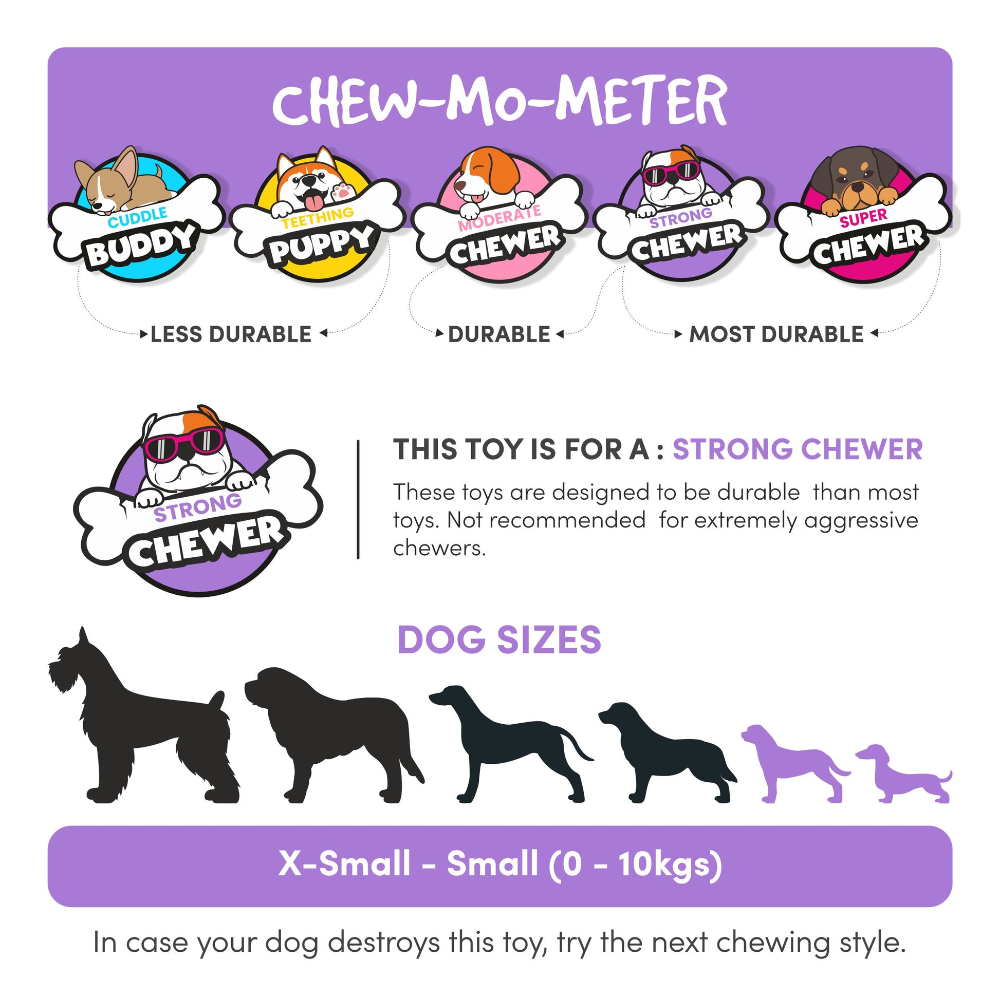 This interactive toy is vanilla scented & treat-dispensing which means you can stuff food or treats such as jerkies, peanut butter, and dahi inside the toy, keeping your dog busy while getting the right amount of exercise.